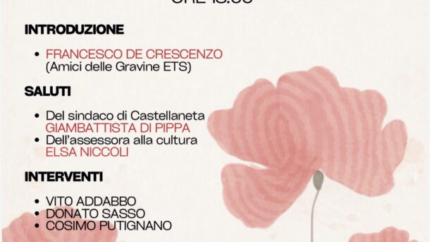 Per il 5ยฐ anno consecutivo, L’associazione Culturale Amici delle Gravine di Castellanta ETS in collaborazione con l’Artista Vito Addabbo, dott. Donato Sasso e dott. Cosimo Putignano vi invitano a partecipare all’evento sulla โ๐๐ข๐จ๐ซ๐ง๐๐ญ๐ ๐๐๐ฅ๐ฅ๐ ๐๐๐ฆ๐จ๐ซ๐ข๐โ ๐๐ก๐ ๐ฌ๐ข ๐ญ๐๐ซ๐ซ๐ฬ ๐ฆ๐๐ซ๐ญ๐๐๐ข ๐๐ ๐๐๐ง๐ง๐๐ข๐จ ๐๐๐๐ ๐๐ฅ๐ฅ๐ ๐จ๐ซ๐ ๐๐.๐จ๐จ presso le OMC-OFFICINE MERCATO COMUNALE di Castellaneta in via Mercato […]